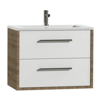 Het Tiger Boston badkamermeubel is krachtig en elegant tegelijk en de mooie ronde greep ligt aangenaam in de hand. De 2 lades bieden voldoende ruimte om alle badkamerartikelen overzichtelijk in op te bergen. Daarnaast zijn ze uitgerust met hoogwaardige ‘soft close’ geleiders waardoor ze geruisloos sluiten. De warme houttint geeft een sfeervol karakter aan het meubel. Daarnaast krijgt het meubel, door de voelbare houtnerf, een mooie natuurlijke uitstraling. De strak vormgegeven polybeton wastafel maakt deze set compleet.