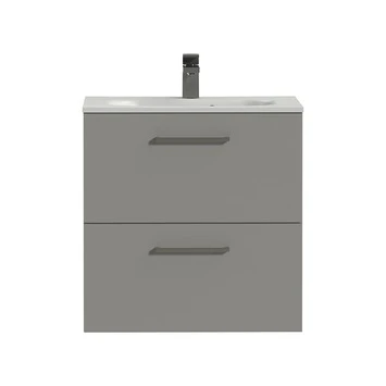 Dit badkamermeubel is onderdeel van de Tiger Studio serie. Dit is een serie met enorm veel varianten met een kleine aanpassing. Denk daarbij aan afmetingen, kleur, vorm, etc. Deze variant heeft een mat-grijze onderkast met 2 lades, met vierkante grepen en een softclose ladesysteem. Dat wil zeggen dat de lades altijd zachtjes sluiten. Dit voorkomt schade aan het houtwerk wanneer je per ongeluk de lades te hard dicht doet. De lades bieden voldoende ruimte om handdoeken en andere sanitaire spullen in op te bergen. De onderkast, met een breedte van 60 cm, heeft een mat witte wastafel van polybeton. Hoewel deze op de afbeelding misschien met kraan te zien is, wordt dit badmeubel exclusief kraan en sifon verkocht. Gelukkig heeft GAMMA ook een breed assortiment met kranen. Dankzij de duidelijke handleiding en meegeleverd bevestigingsmateriaal kun je eenvoudig zelf de montage uitvoeren. Tot slot zit er 3 jaar garantie op alle badmeubelen binnen de Tiger Studio serie. Mocht dit Tiger Badkamermeubel Studio 60 cm Mat Grijs met Polybeton Wastafel Mat Wit en Vierkante Grepen het net niet helemaal zijn, kijk dan vooral nog even verder in de GAMMA webshop. Er is vast en zeker een passende maat en kleurencombinatie te vinden!