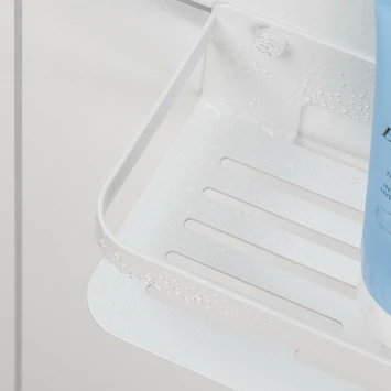 Tiger Caddy douchemand heeft een vlakke bodem met hoge rand die ervoor zorgt dat de producten stevig in het rek blijven staan en de afwateringssleuven laten het water met gemak weglopen. De zachte afgewerkte hoeken zorgen ervoor dat je zonder gevaar voor eigen vingers het mandje schoon kan maken. De Tiger Caddy witte douchemand is 24cm.