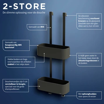 Bij Tiger houden we van functionele schoonheid. Dit handige doucherek van Tiger 2-Store heeft genoeg ruimte voor alle badkamerspullen. Daarnaast zijn de mandjes makkelijk in hoogte te verstellen. Dankzij het gebruik van contrasterende materialen krijgt dit item een stijlvolle uitstraling. 2-Store is functioneel, ruimtebesparend en past bij elke badkamerstijl.