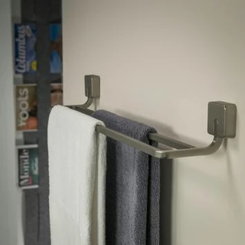 Dit Tiger Dubbel Handdoekrek Impuls RVS is gemaakt van RVS en is goed te combineren met de overige artikelen uit de Tiger Impuls serie. Het materiaal is zeer geschikt voor vochtige ruimten zoals de badkamer. Het rek heeft 2 bevestigingspunten en een onzichtbare montage. Dat betekend dat de montage geen zichtbare schroeven achter laat. Het handdoekrek is ook te monteren met behulp van TigerFix. Op die manier hoef je niet eens te boren. De handdoekhouder komt met 5 jaar garantie en je kunt in de GAMMA webshop ook de verchroomde versie kopen.
