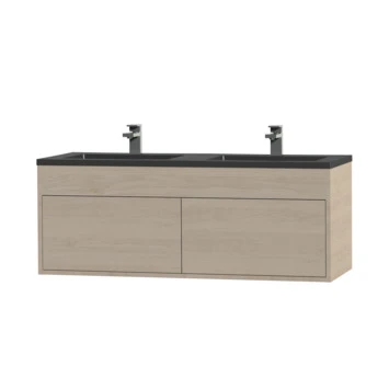 Tiger Helsinki Badkamermeubel 120 Cm Naturel Eiken Met Wastafel Polybeton Zwart