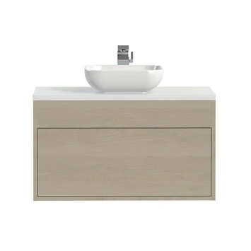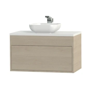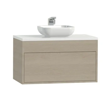 Het Tiger Helsinki badkamermeubel is een simplistisch, modern en greeploos meubel in Scandinavisch design. De wastafelonderkast is voorzien ruime lades waarin alle badkamerspullen overzichtelijk opgeborgen kunnen worden. Voor extra comfort is deze onderkast voorzien van handige ‘push to open’ lades waardoor ze al middels één simpele aanraking openen. De warme houttint geeft een sfeervol karakter aan het meubel. Daarnaast krijgt het meubel, door de voelbare houtnerf, een mooie natuurlijke uitstraling. Het houten wasblad is reeds voorzien van een uitsparing voor kraan en waskom. De elegante, onderhoudsarme keramische waskom maakt de set compleet.